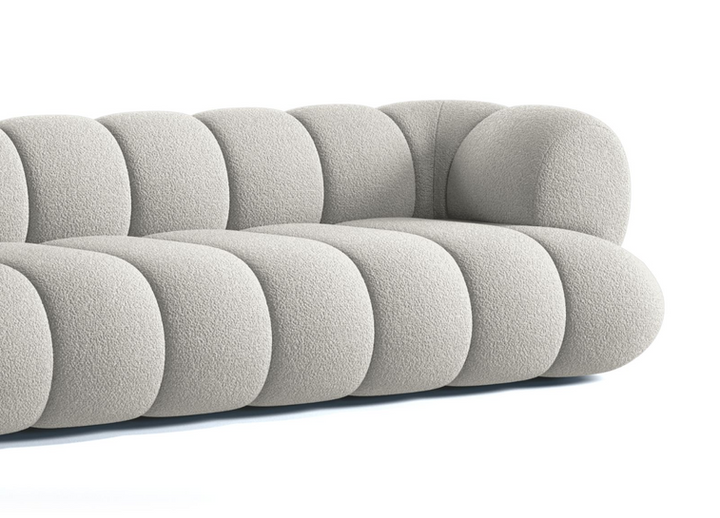 Amplio sofá curvo de cuatro puestos tapizado en terciopelo