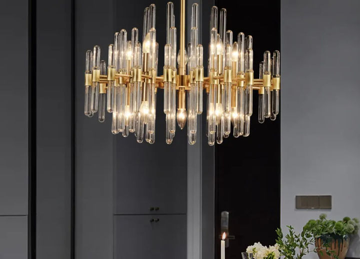Lámpara de 18 bombillas fabricada en hierro cromado y vidrio